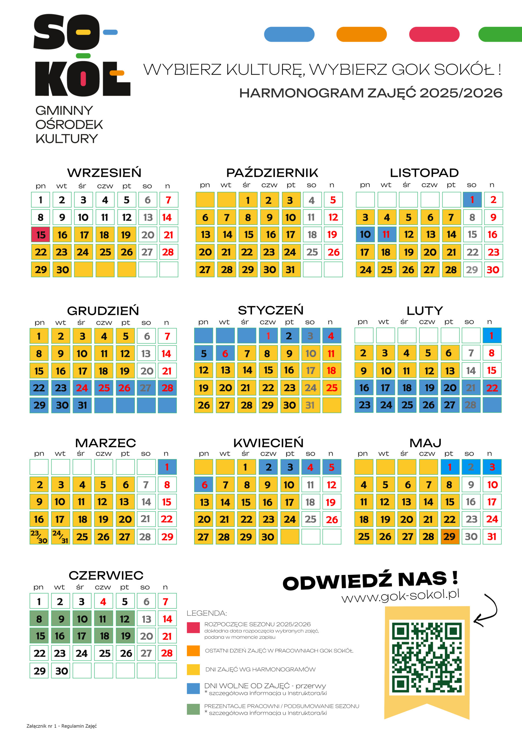 DOKUMENTY DO POBRANIA DLA UCZESTNIKÓW ZAJĘĆ PROWADZONYCH W GOK Sokół